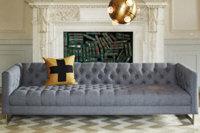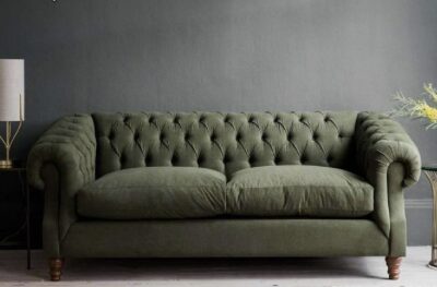 Classic three-seater sofa capitone style and upholster from high quality velvet fabric. Seat pillows are made of latex foam and a layer of goose feathers. The sofa legs are made of specially treated and water-color painted wood. On customers’ request the sofa can be made as three-seater and two-seater in dimensions depending on the dimensions of your living room: three-seater – 215 – 245cm and two-seater – 185 – 205cm.