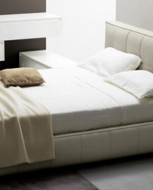 Queen size bed in dimensions 220 x 180 cm made of either leather or fabric on customer’s choice. The construction of the base and the headboardare designed with decorative stitching that creates a unique aesthetic result. It is possible to build the bed with storage space with / without mechanism where you can store blankets or pillows.