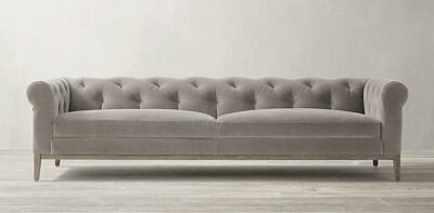 Κλασσικός τριθέσιος καναπές από βελούδο σχέδιο καπιτονέ
